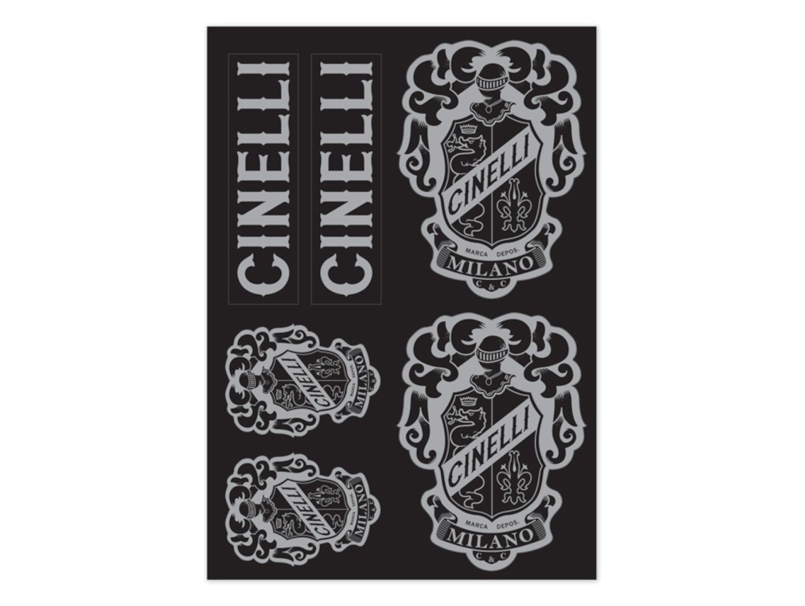 High quality screen printed stickers on vinyl base featuring the Cinelli Crest logo.