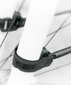 At the front, the Veloflexx is mounted to the fork bridge with a rubberised hook and loop fastener or a cable tie. The frame adapters enable it to be mounted to any fork the can the angle be adjusted. The black-coated stays provide even greater support.